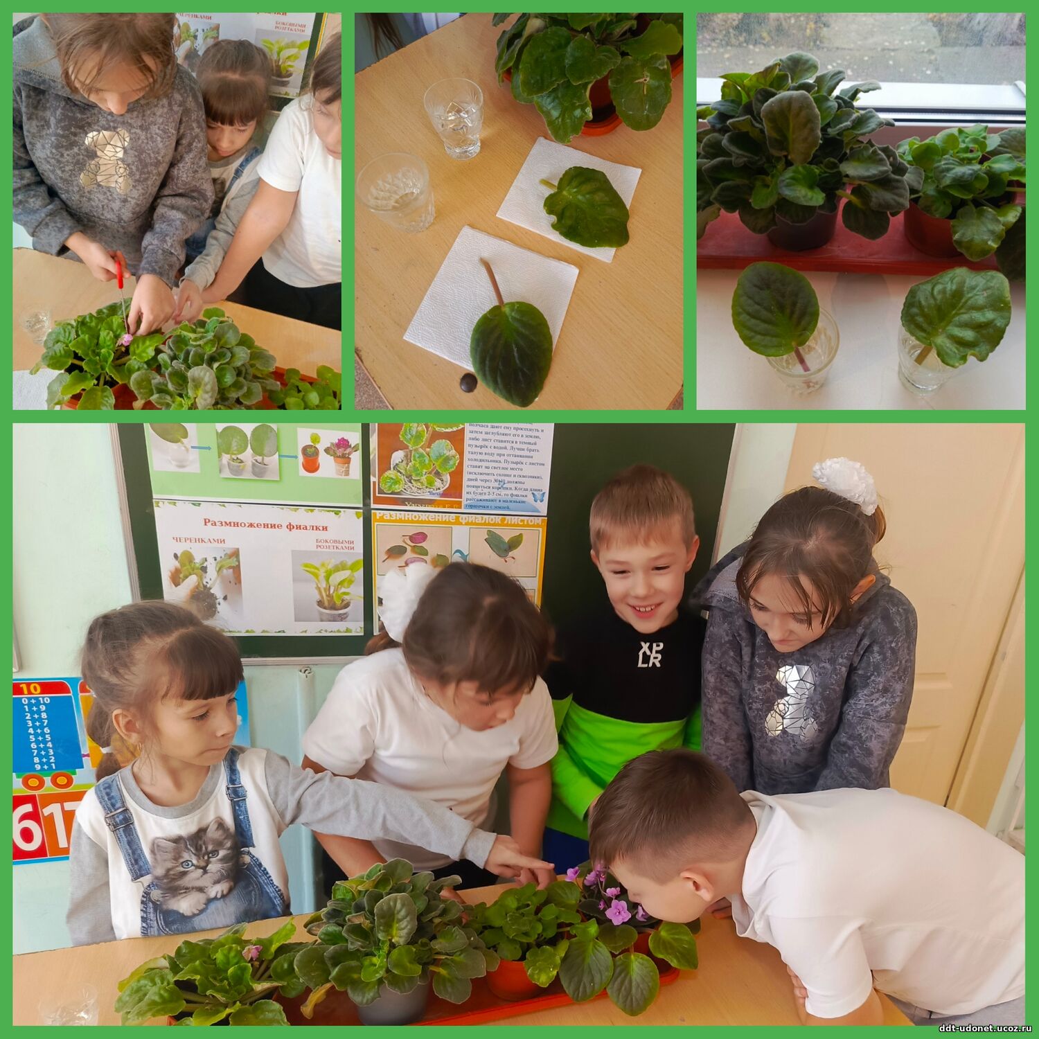 Ребята объединения "Росток" приступили к изучению информации об выращивании и уходе за комнатными растениями- фиалками, а также об их размножении. Рассмотрев цветущее растение и изучив его строение, ребята срезали несколько листов и поместили их в воду, чтобы провести наблюдение за ростом корневой системы и в дальнейшем высадить их в горшки.